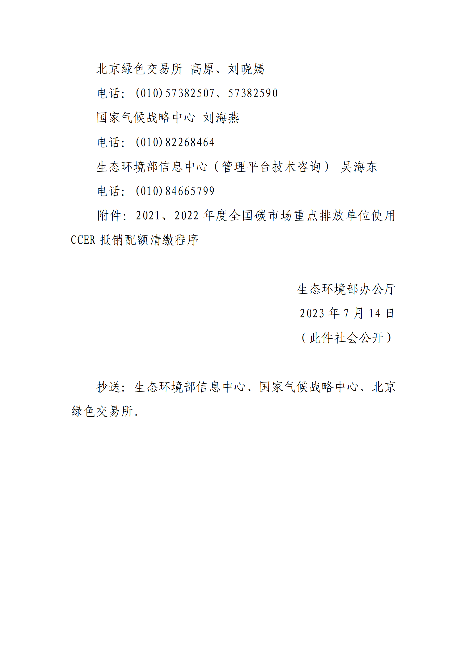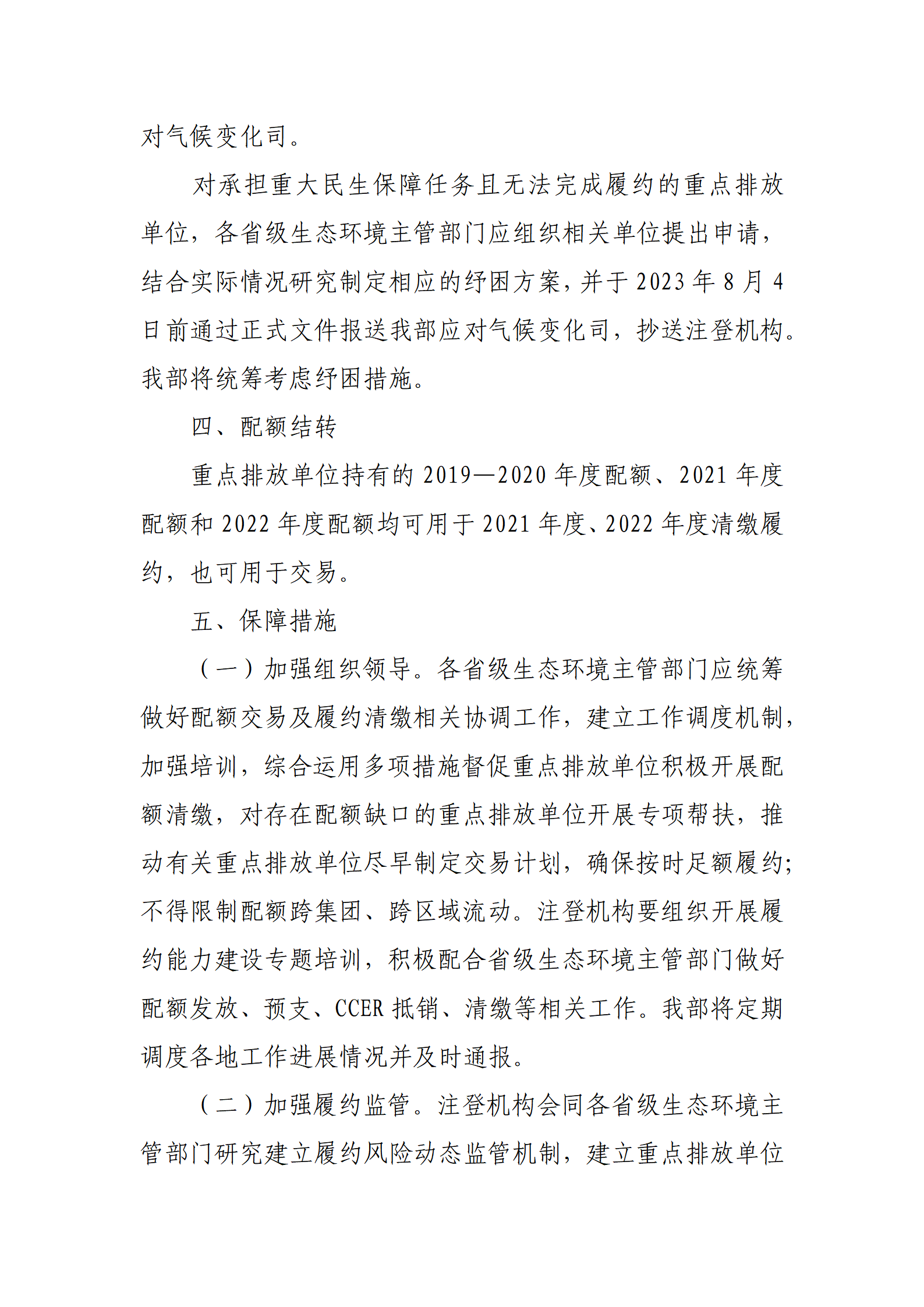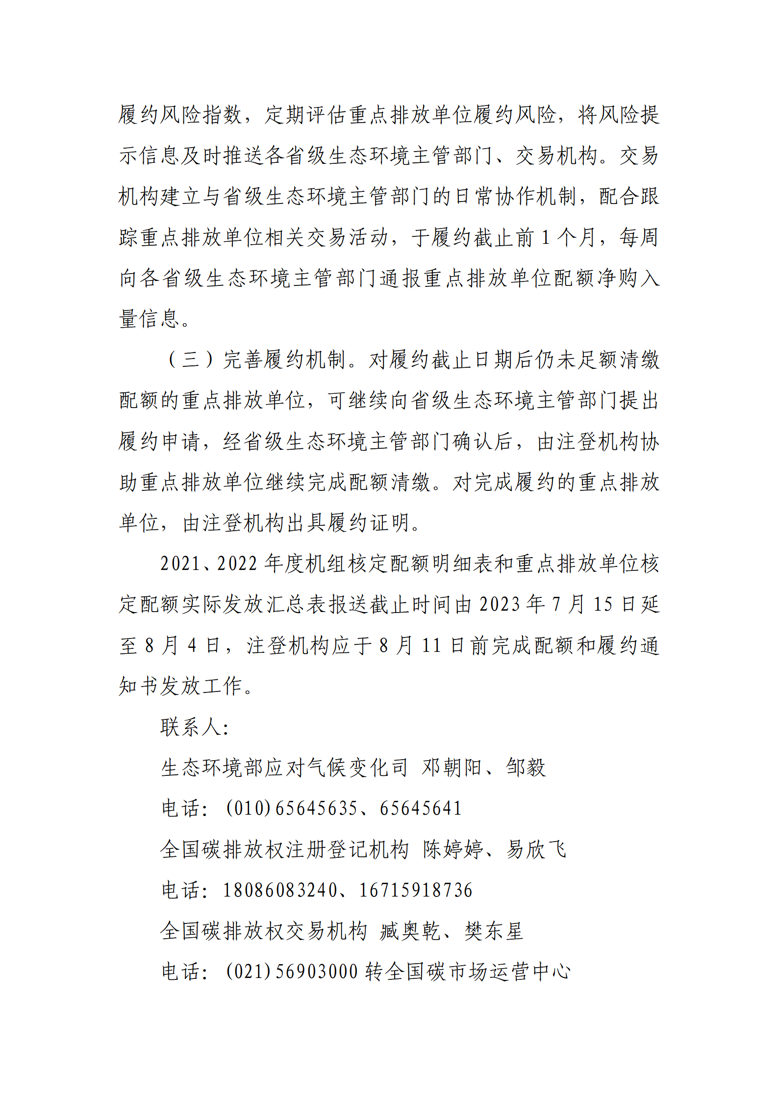 关于全国碳排放权交易市场2021、2022年度碳排放配额清缴相关工作的通知