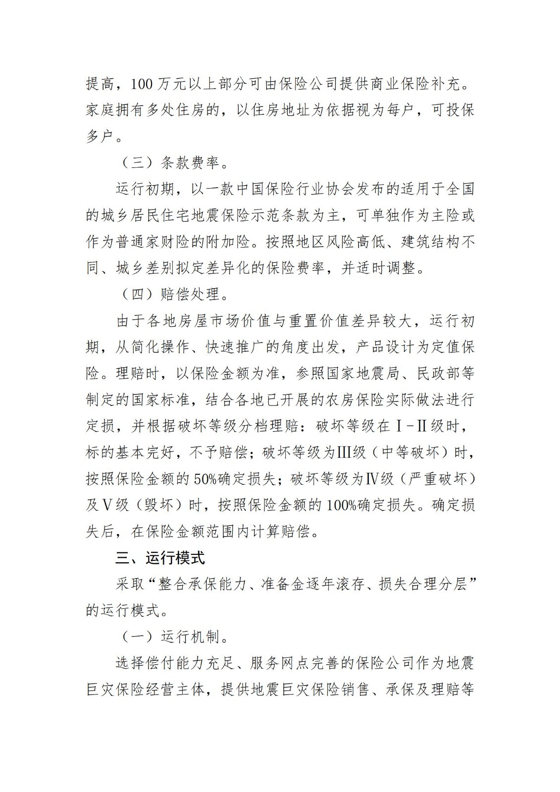 建立城乡居民住宅地震巨灾保险制度实施方案