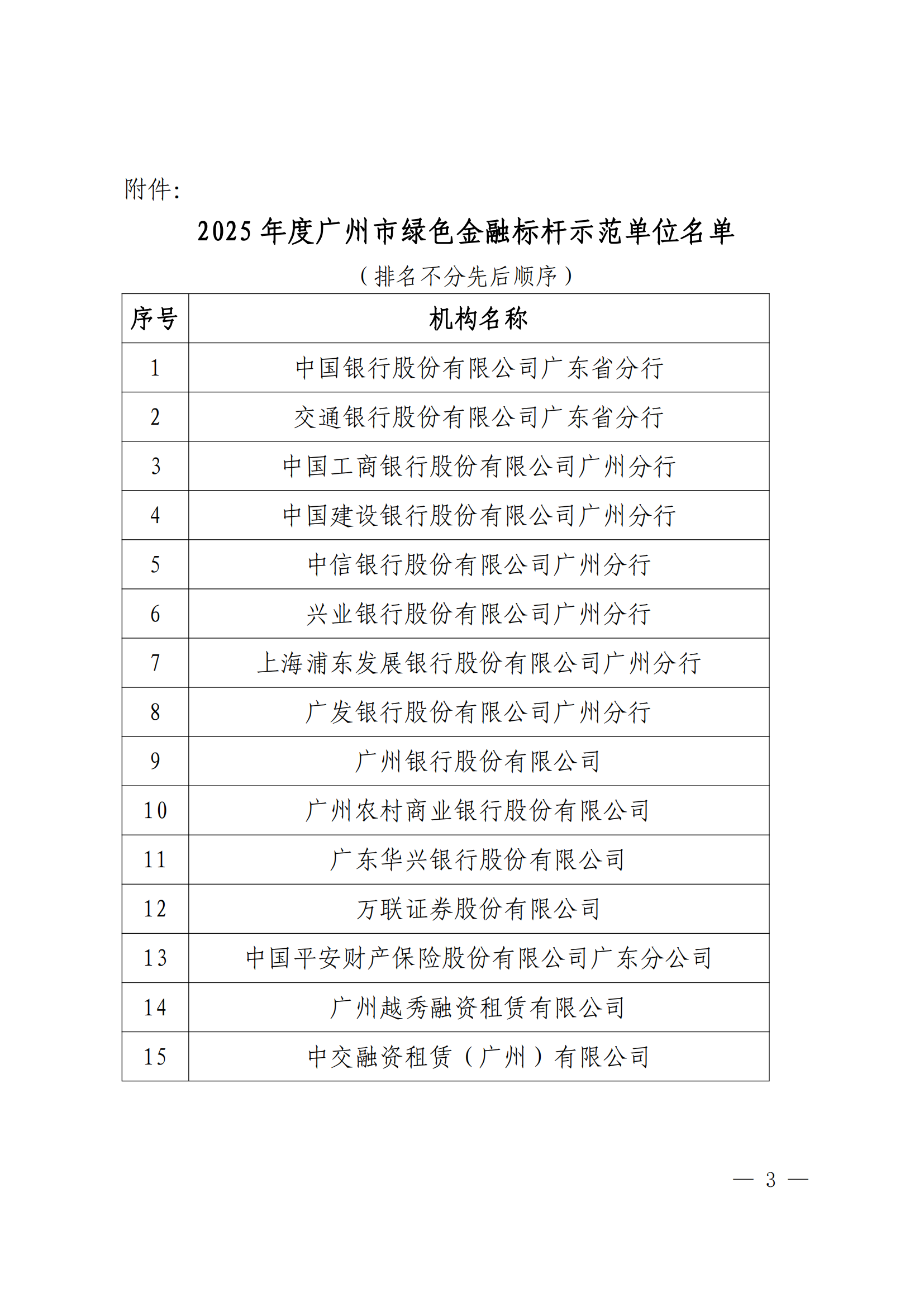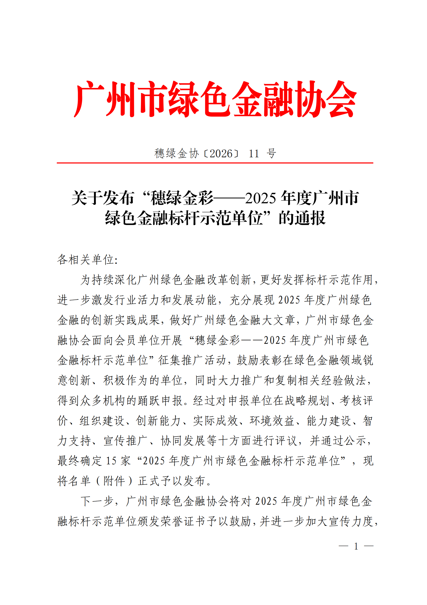 关于发布“穗绿金彩——2025年度广州市绿色金融标杆示范单位”的通报